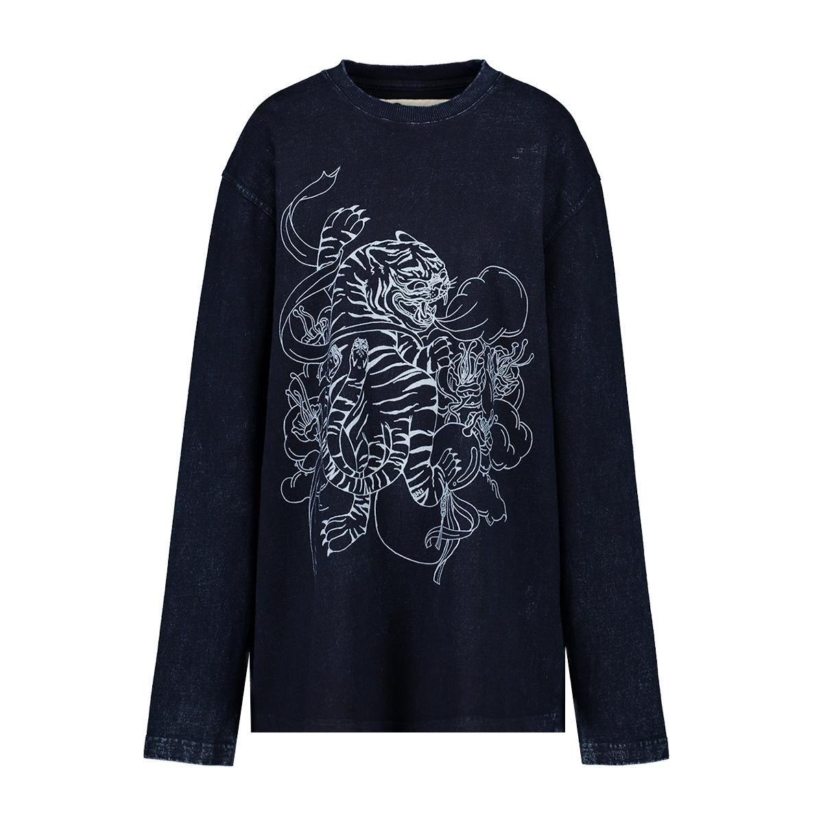 INDIGO DYED PRINTED LONG SLEEVE T-SHIRT D1018-A-10